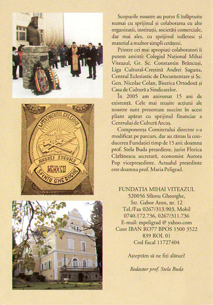Broşură: Stela Buda - Fundaţia "Mihai Viteazul" la 15 ani - descărcaţi aici (format .jpg)